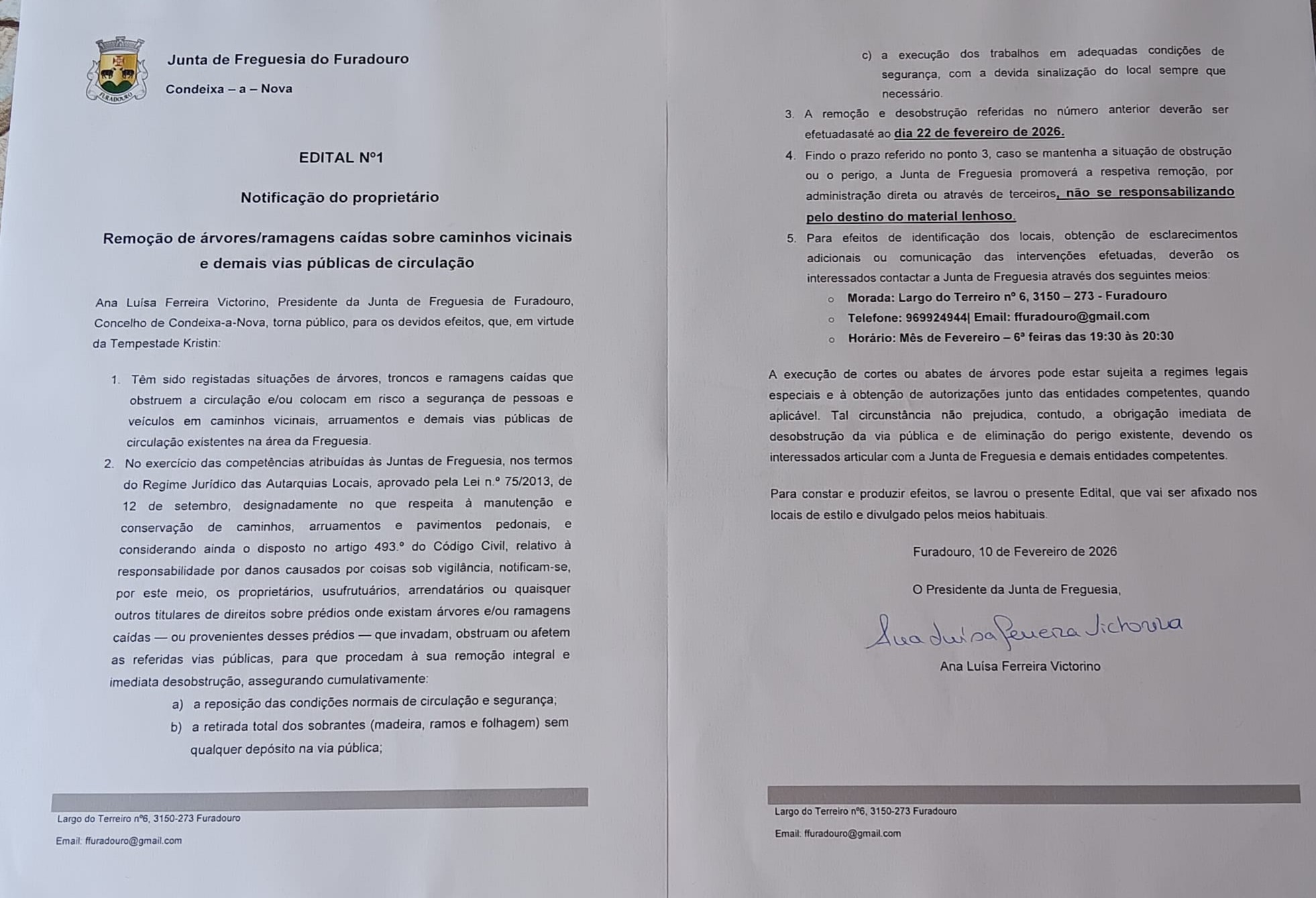 Conto convosco, tal como podem contar comigo, para continuarmos a cuidar da nossa terra com união, respeito e espírito de comunidade.